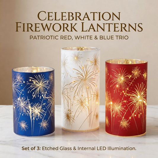 Celebration Firework Lanterns – Premium Patriotic Red, White & Blue Trio